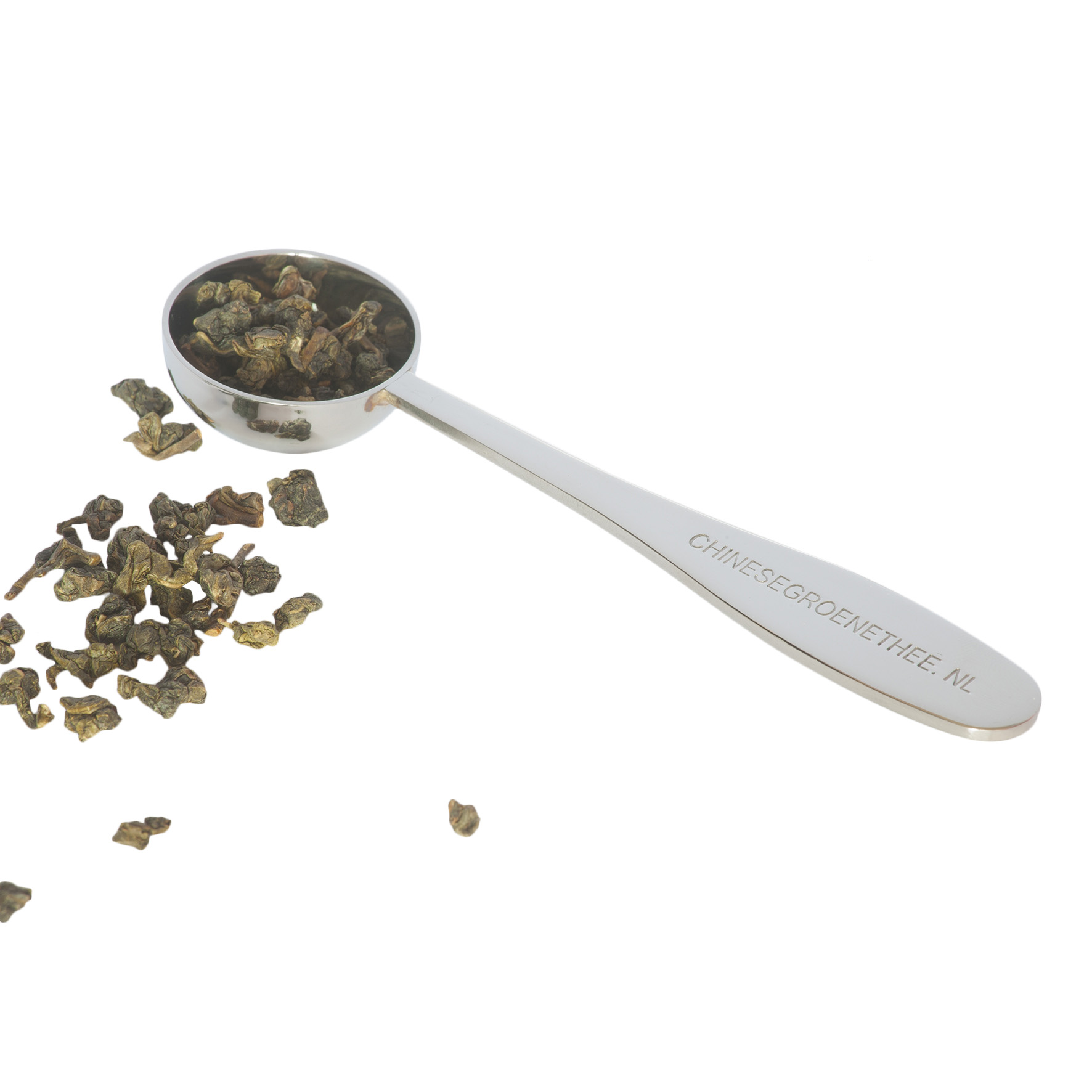 Chinese groene thee geschenken set bestaande uit 50 gram thee theebeker 300 ml plus stalen maatlepel en thee brochure.