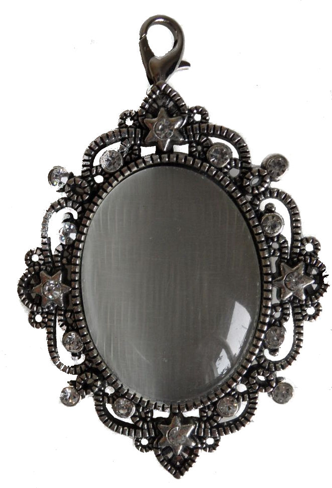 Los sieraad voor aan sjaal medaillon grijs met zilverkleurige rand