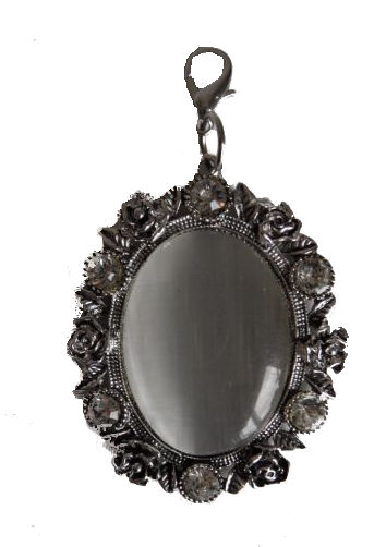Los sieraad voor aan sjaal medaillon met zilverkleurige rand met stras steentjes en roosjes