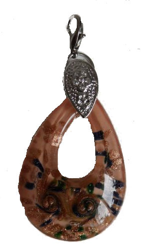Los sieraad voor aan sjaal medaillon muranoglas druppel zalm kleur.