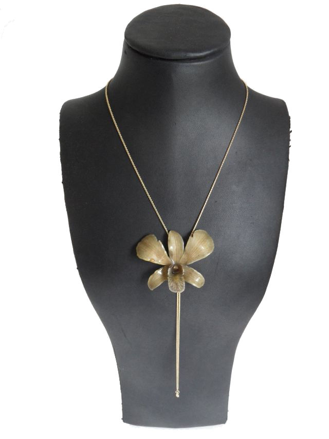 Orchidee sieraad verstelbare hanger kleur goud groen grijs. Lengte ketting 40 cm.